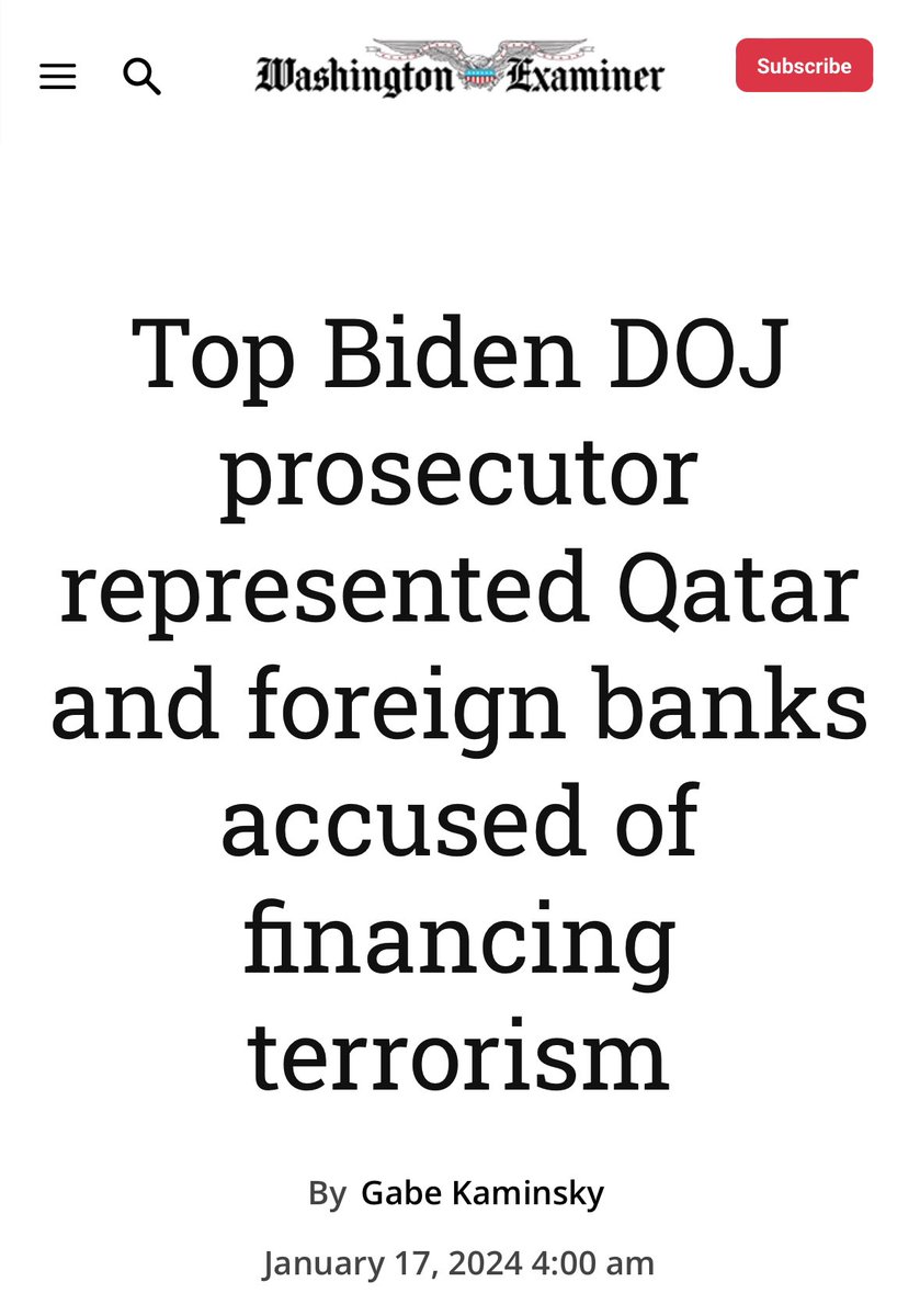 Biden’s top prosecutor Matthew Graves, who led the J6 probe in DC, not long ago was a lawyer for Hamas-linked Qatar and Lebanese banks accused of funding terrorism https://www.washingtonexaminer.com/news/2797194/top-biden-doj-prosecutor-represented-qatar-foreign-banks/