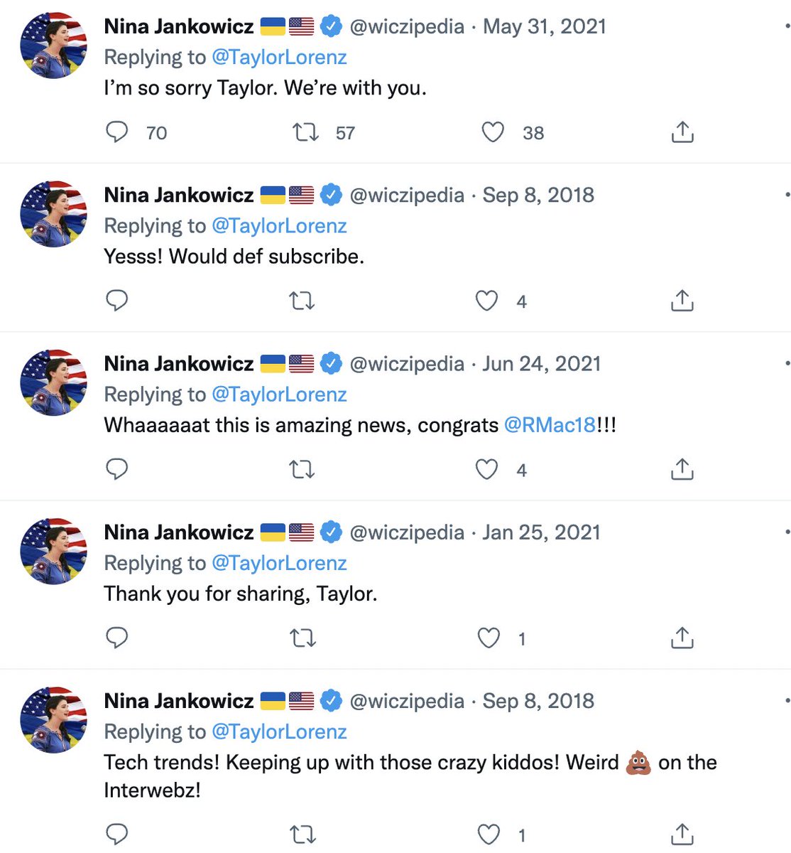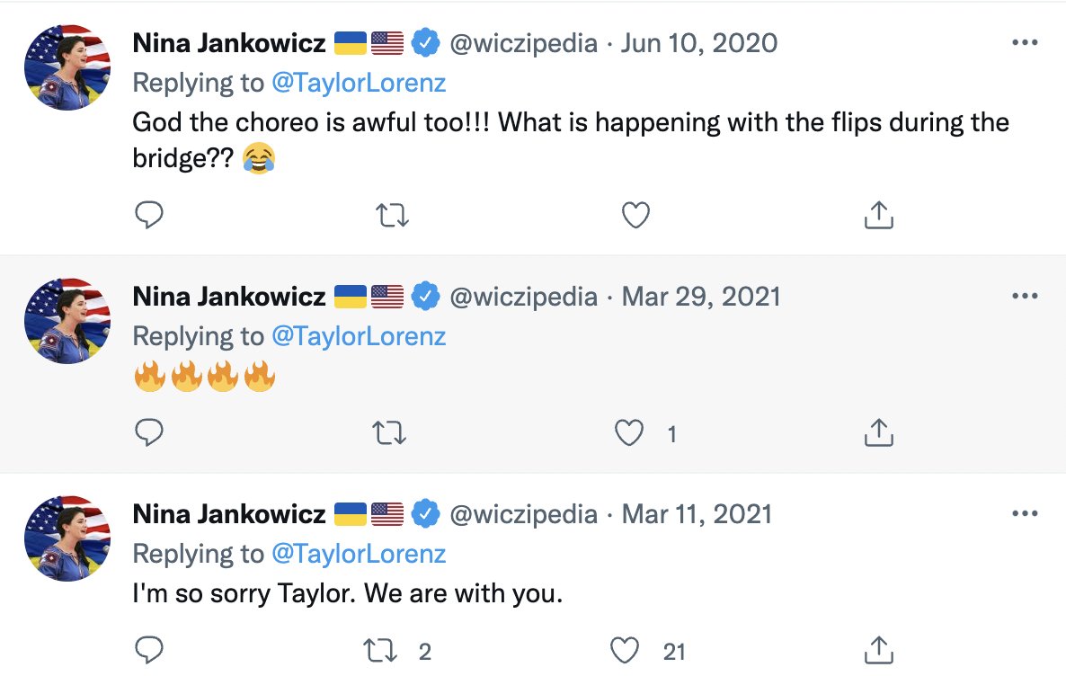 Indeed, Jankowicz has a very long history of defending Lorenz and expressing solidarity for the trauma Lorenz suffers when her work is criticized. That's almost certainly where Lorenz got her version of events and seems like it should be disclosed when Lorenz defends Jankowicz.
