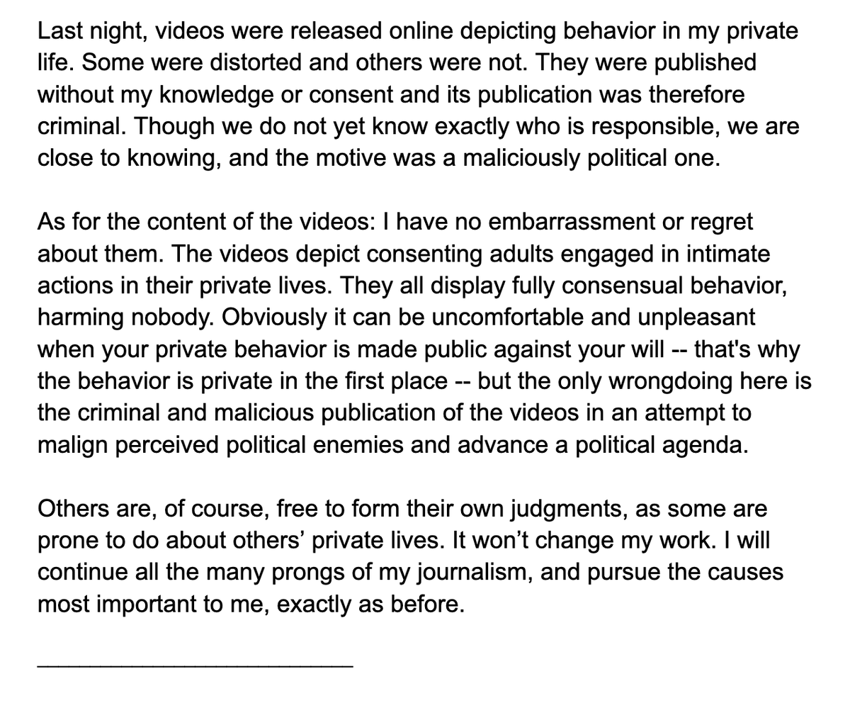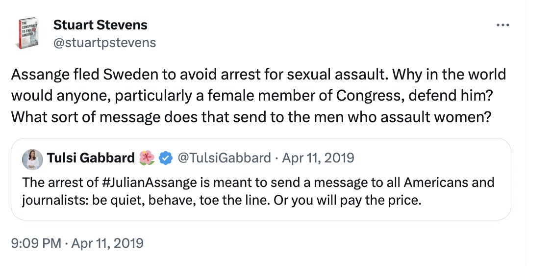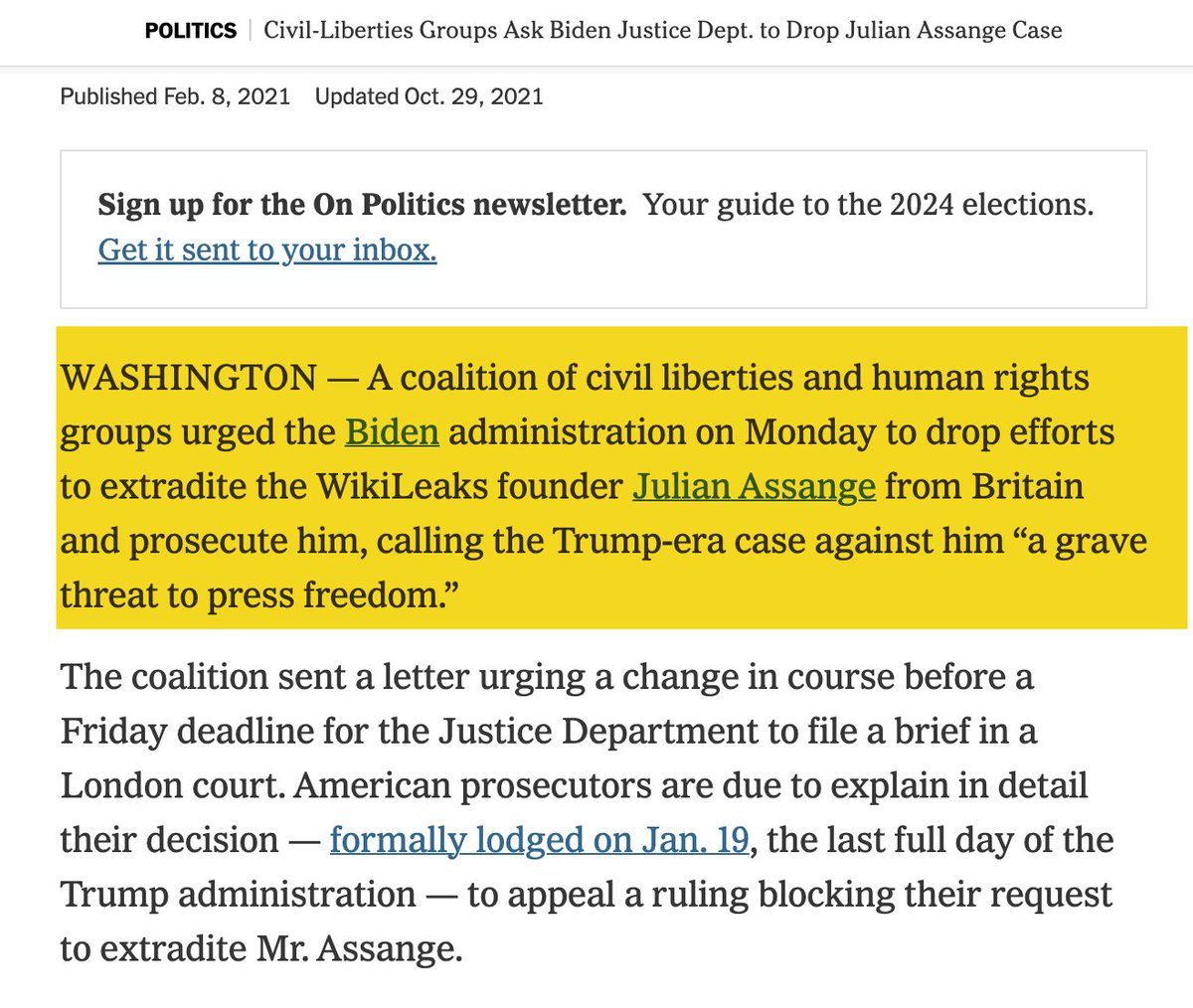 Every press freedom and civil liberties group in the West has united -- and they virtually never do -- to warn that Assange's prosecution by the Biden DOJ is the gravest threat to press freedoms. Those who condemn foreign regimes, but never their own, are cowardly jingoists. https://t.co/Ys9yAmNQdJ