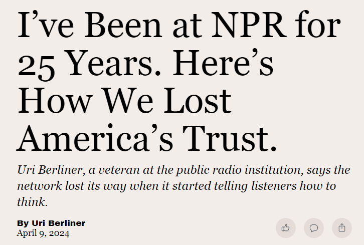 I really recommend reading that entire scathing indictment of why NPR and media similar to it are failing by every metric, but these paragraphs in particular are such pure truth about the US corporate media and how they now think and behave: https://t.co/qzMbElYnL6
