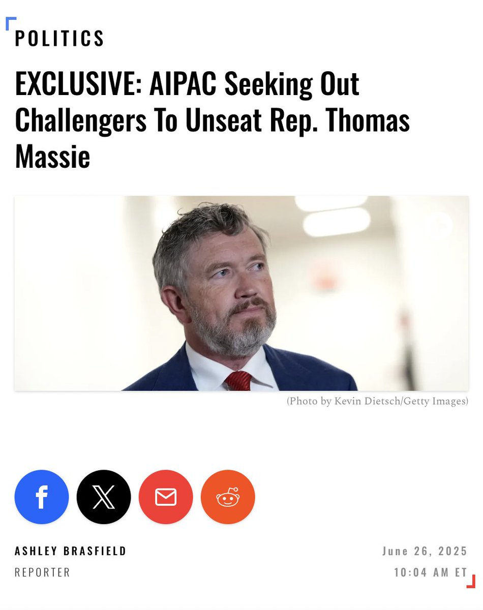 2024: Thomas Massie describes how every member of Congress has their own AIPAC minder, and becomes more vocal in questioning why it is that the US finances Israel's military, wars and society. 2025, ensuring everyone understands the punishment scheme: