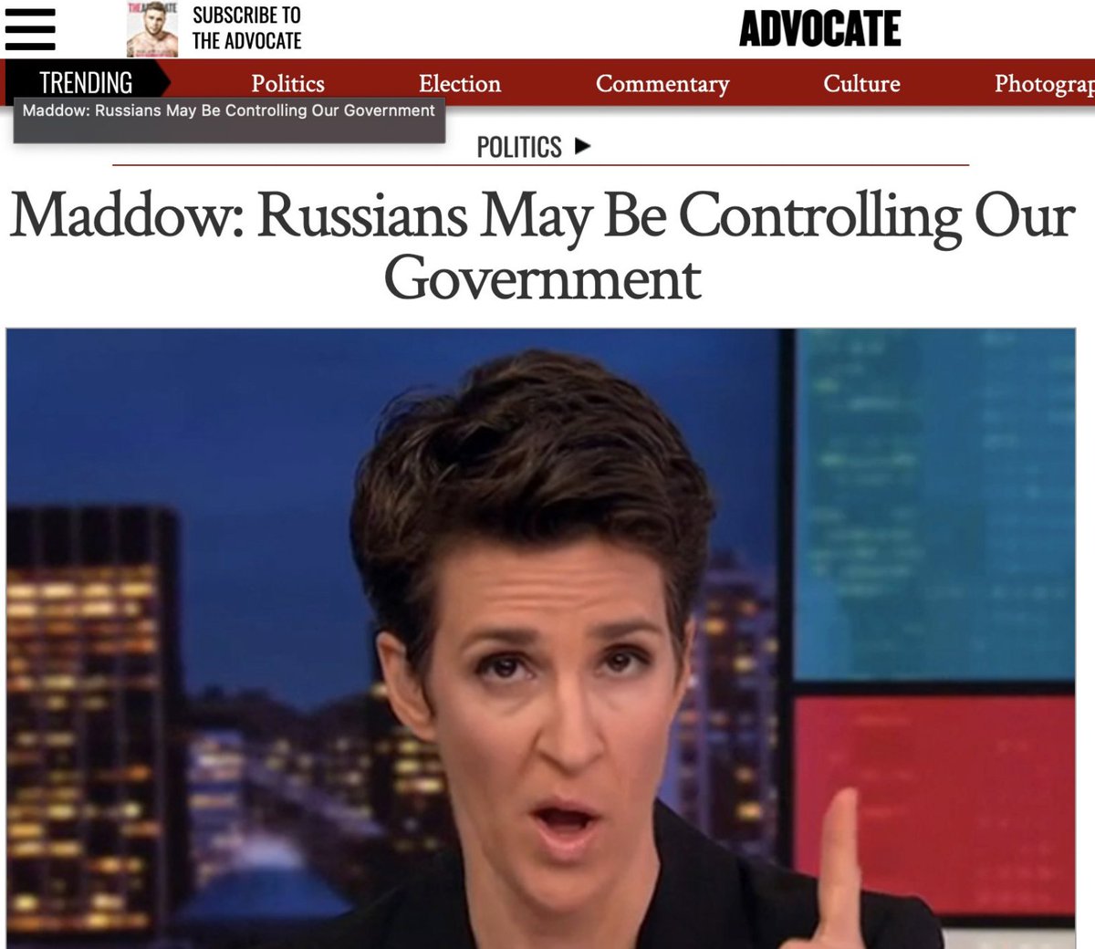 If Hillary's insanely repressive measure were implemented -- people spreading disinformation could be imprisoned -- the first two to share a prison cell should be her and Maddow, who drowned the country in the Steele Dossier, Afla Bank servers and other demented debunked lies.