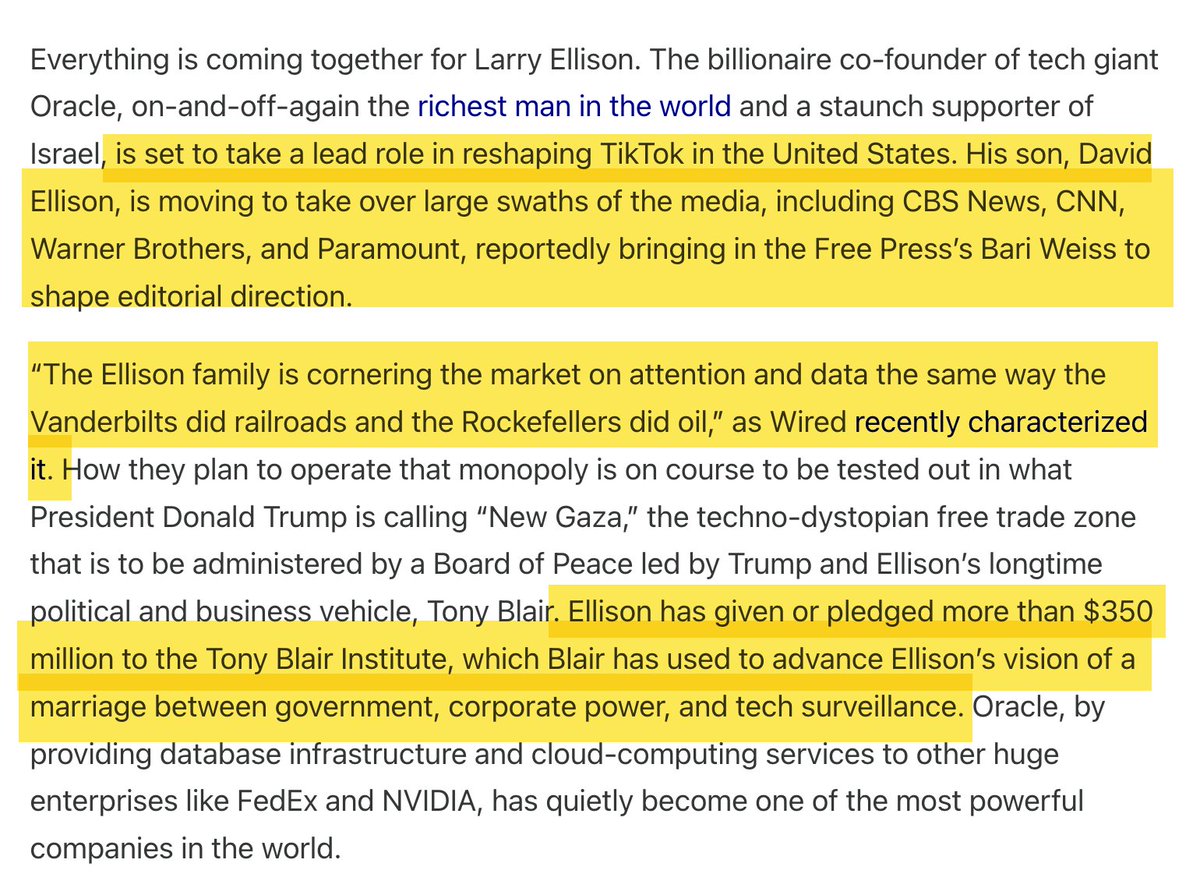 🇮🇱 ....... 🇺🇸 The most important media story by far is how Larry Ellison -- the largest-ever private donor to IDF -- is buying up the largest media properties (not just CBS and Paramount but also TikTok), at exactly the same time support for Israel in the US is unravelling.👇
