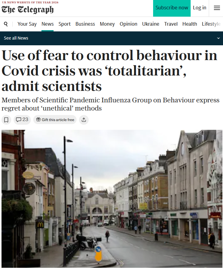5. Weaponized psychology: Governments literally hired behavioral psychologists to crank up the fear. In the UK, the SPI-B team admit they used “unethical” fear tactics – one scientist called it “totalitarian… not ethical” – to increase compliance. Leaked documents show officials discussing how to frighten the public into obedience. This was a deliberate fear pandemic, not a viral one.
