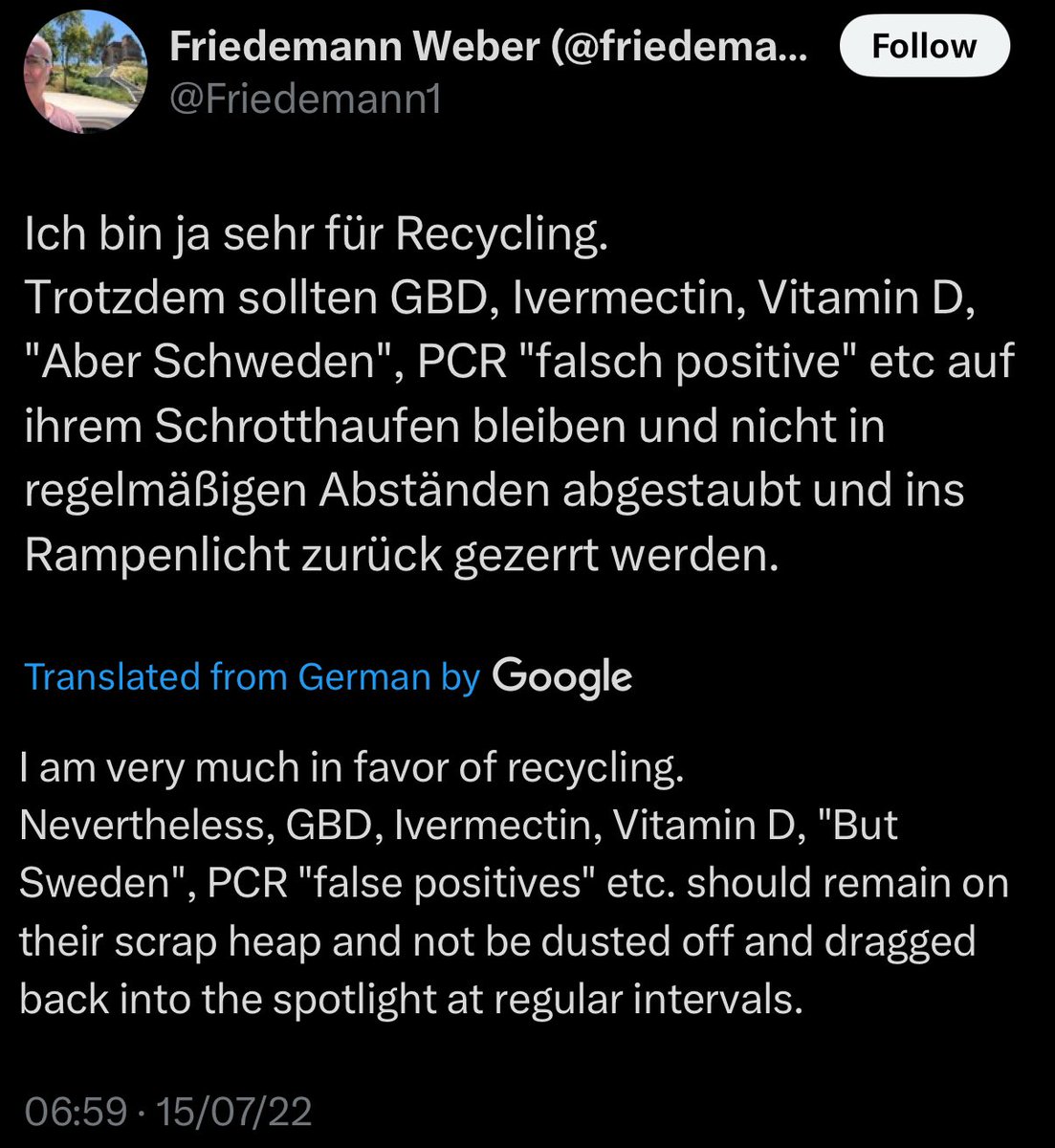 @Marc_Veld @sunfluencer @GidMK @raouljdegroot @EricTopol #10 Friedemann Weber (@Friedemann1), a virology professor, says vitamin D, ivermectin and the Great Barrington Declaration belong on a “scrap heap.” That’s what happens when your PhD is in viruses but you treat nutrients and early treatment like conspiracy theories. Next clown.