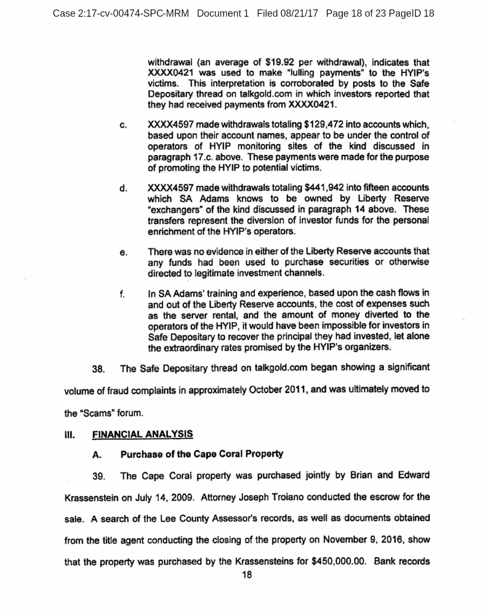 10/ Next came “The Safe Depositary” — another Ponzi scheme. Same tactics: unrealistic returns, fake testimonials, and quiet vanishings. But the financial footprint didn’t vanish. It tied back to a $465,000 wire transfer connected to the Krassensteins’ property in Cape Coral. https://t.co/QI23A1zNyn