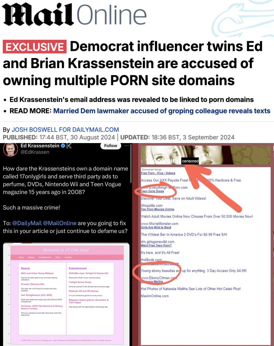 15/ My research made waves, with @DailyMail reporting on it. @EdKrassen claimed the domain was for perfume/DVD ads, but @waybackmachine shows this is false for when they owned it. https://t.co/t5Z9lyQQIn