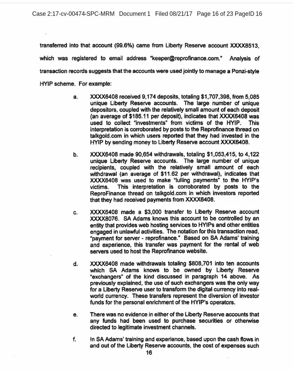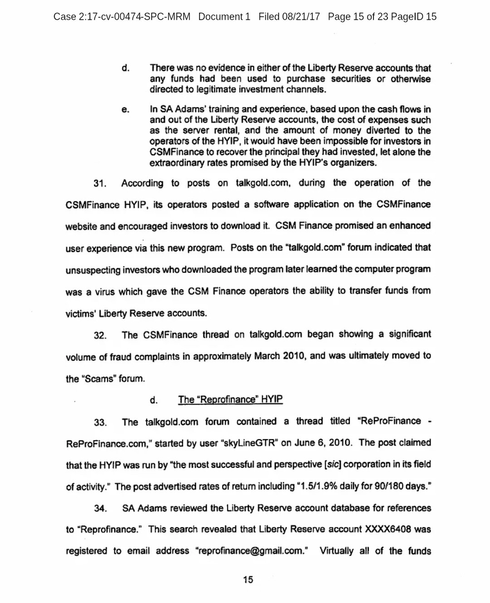 9/ Another was ReProFinance. It used Liberty Reserve, an anonymous currency widely used in laundering. ReProFinance made lulling payments to early users to appear legitimate. It collapsed in 2012 after being exposed in fraud forums and watchdog lists. https://t.co/tElmzrDpBp