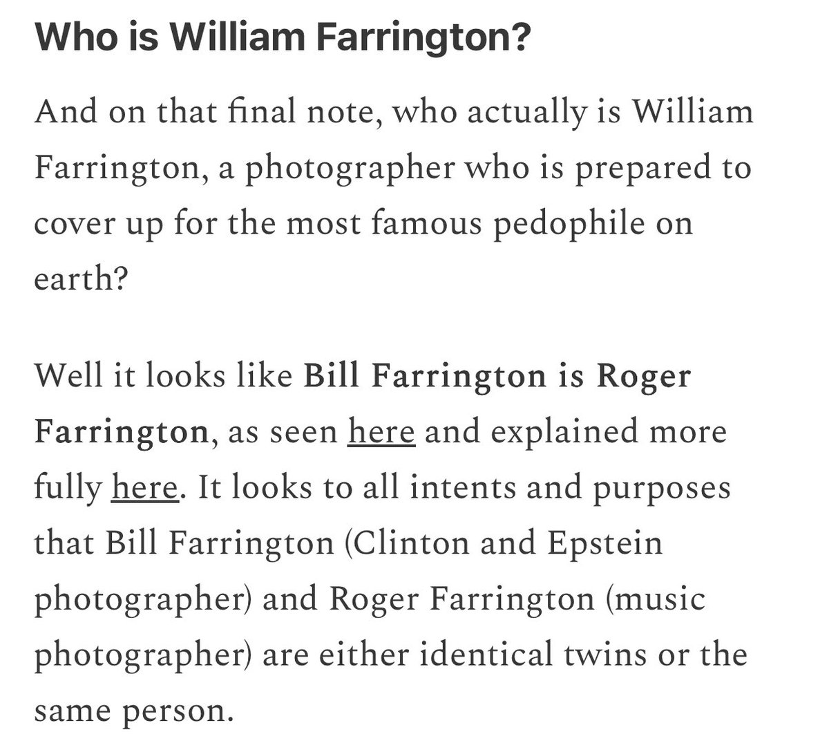 @nypost #14 Still think Epstein is dead? Start here. This article breaks it all down: photo by photo, frame by frame, argument by argument. The media lied. The government staged it. Pedophiles are running the system. https://www.arkmedic.info/p/william-farrington-and-the-pedophile