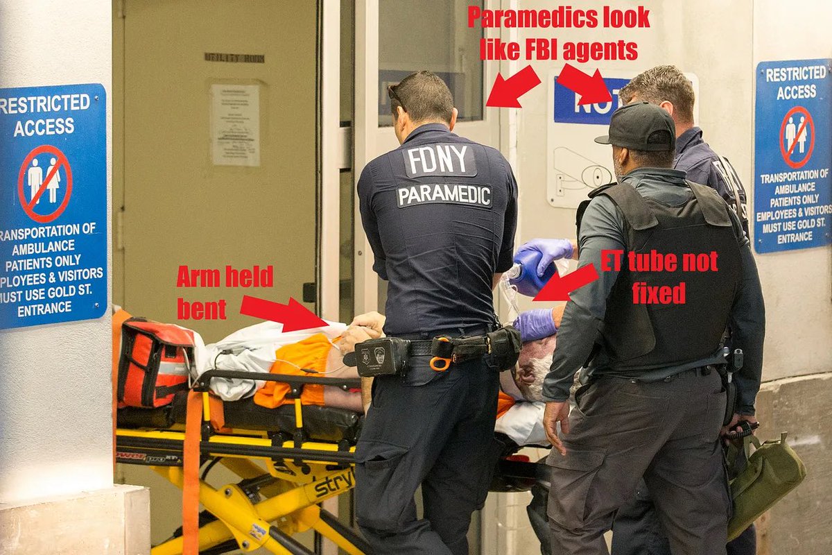 @nypost #4 Also Epstein’s arm is bent in a way no unconscious body could hold. The tube looks misplaced, if it’s even real. The guy doing “CPR” wasn’t in the shot seconds earlier. It’s looking rather like a staged performance, and clearly not a resuscitation.