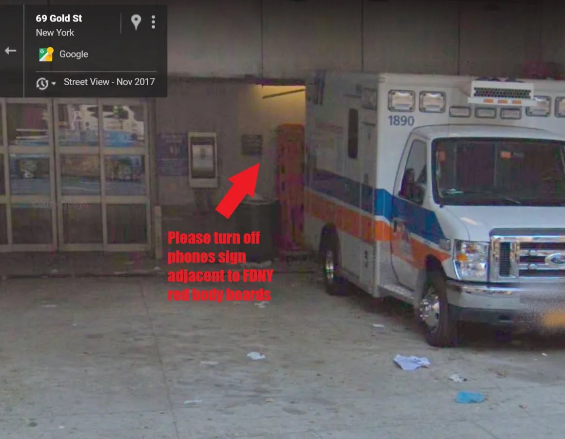 @nypost #5 The whole thing happened in the ambulance bay. Look at the red boards, electrical panel, sliding door. No movement. No hallway. He was never taken inside. He was displayed, photographed, and mysteriously disappeared.