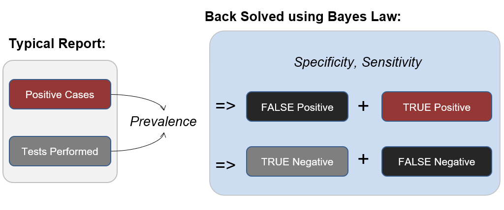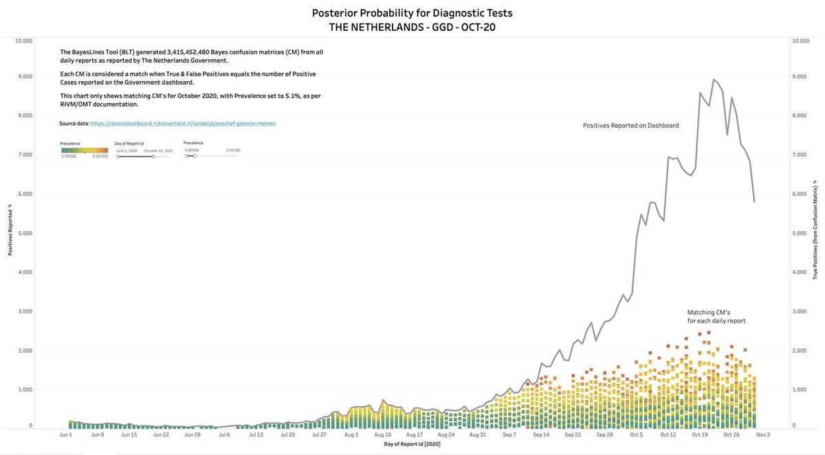 3/ The Bayes Line Tool (available on https://bayeslines.org) is able to back-solve disease #prevalence, test #sensitivity, test #specificity, and therefore, true positive, false positive, true negative and false negative numbers from official governmental test outcome reports.