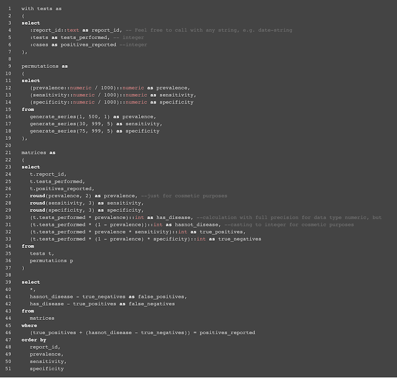 Take-away message for the layperson. What we see is most likely the following: - Extremely high rate of false positives - Much lower test specificity than reported by the test manufacturers - Overestimation of the prevalence