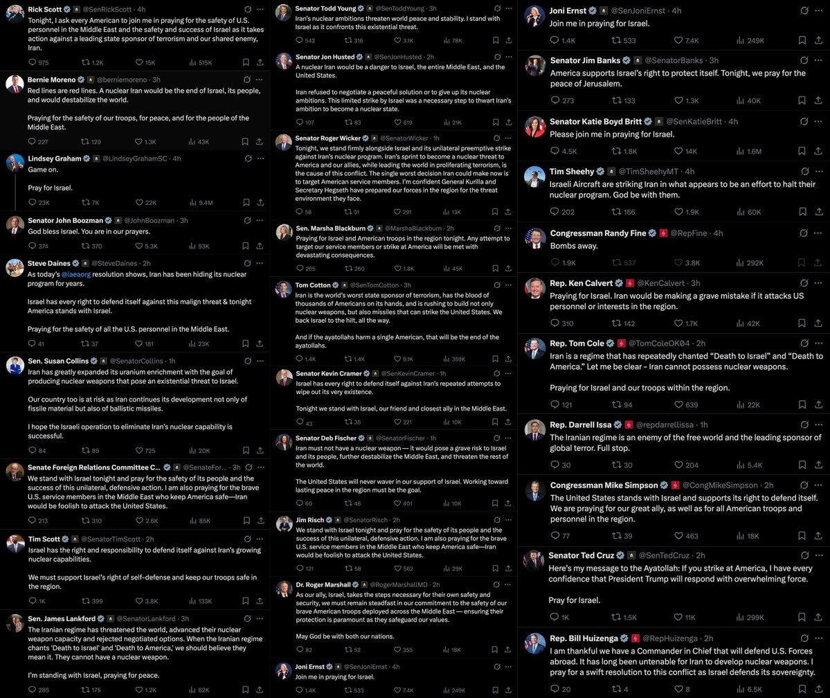 > Israel attacks Iran > Normal Americans: “What the fvck?” > Politicians: “We stand with Israel.” > Every statement reads like it came straight from AIPAC HQ In case you were wondering: yes, you're living in an occupied country. https://t.co/MrjhzKSGys