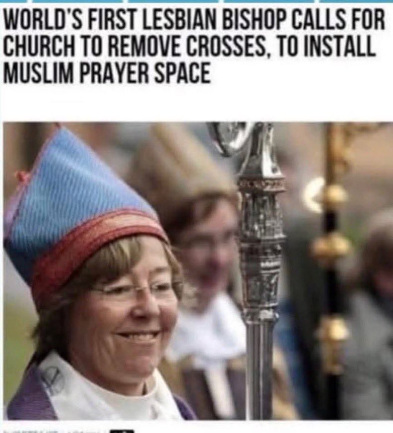 Eva Brunne, the world's first openly lesbian bishop, has called for a church in Stockholm, Sweden, to remove all signs of the cross, and instead build an Islamic prayer room in order to welcome Muslims. Several other Christian leaders in Sweden