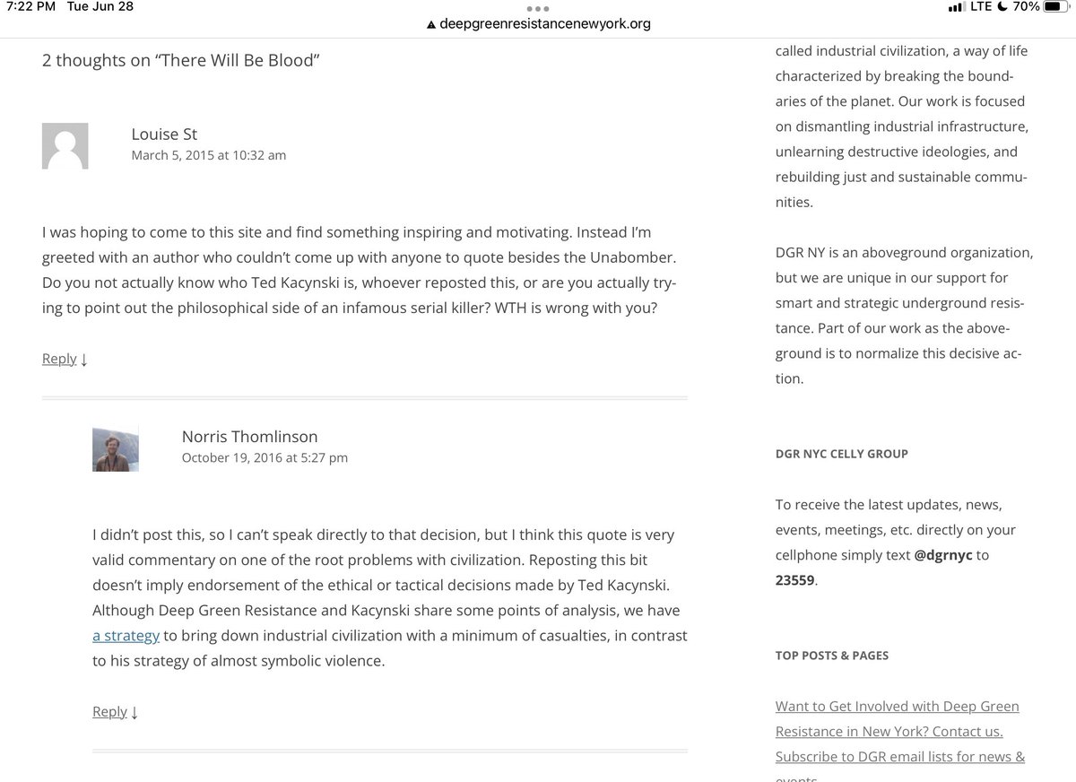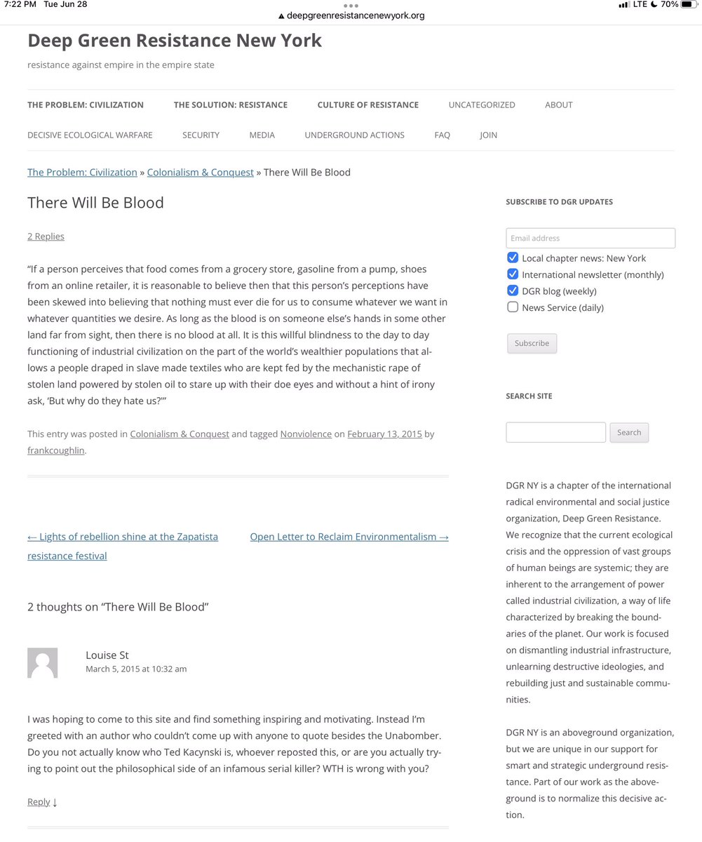 Do you think any real civil rights organization would be named as part of a new generation of Unabomber acolytes, like Deep Green Resistance? Please stop and think about how very good groomers often are at seeming harmless and charming. https://nymag.com/intelligencer/2018/12/the-unabomber-ted-kaczynski-new-generation-of-acolytes.html