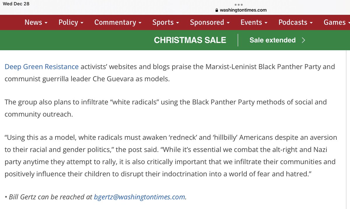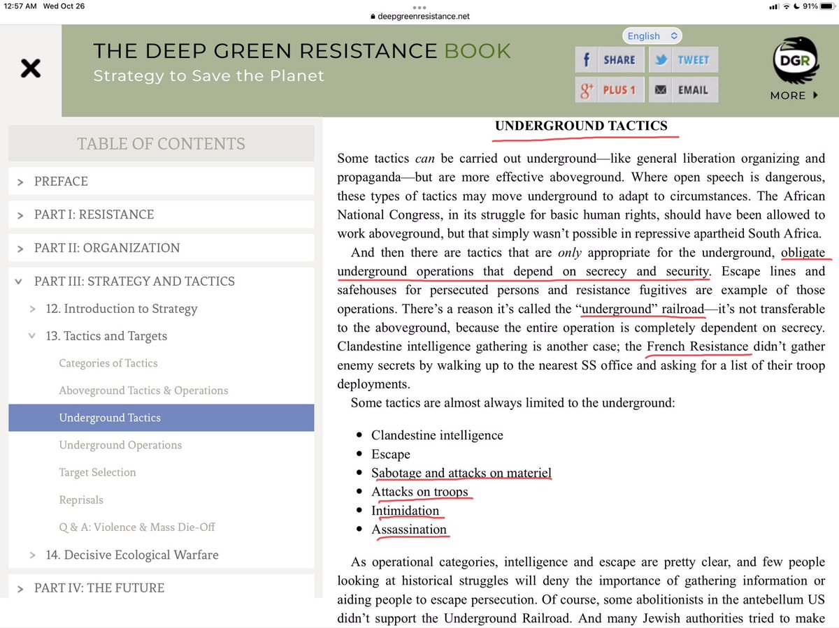 Also, since the attackers were apparently masked, do we know none of them were Deep Green Resistance members? It's a secret group. Their founders wrote a manual on planning covert cells, infiltrating other organizations, & engaging in sabotage, from vandalism to assassination.