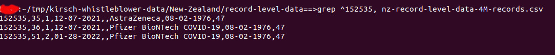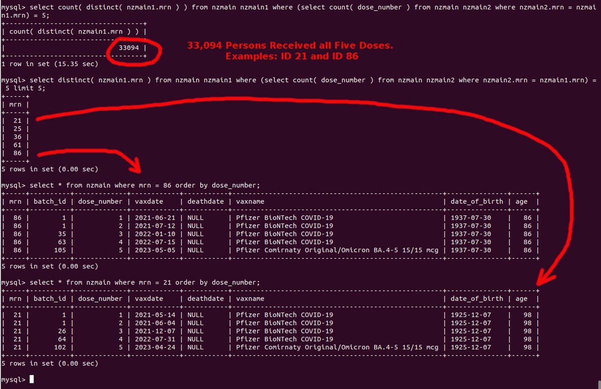 The total number of DISTINCT INDIVIDUALS in the "leaked" database is only 2,215,729, even though 4.3 million New Zealanders received their vaccine. https://ourworldindata.org/grapher/people-vaccinated-covid?country=~NZL
