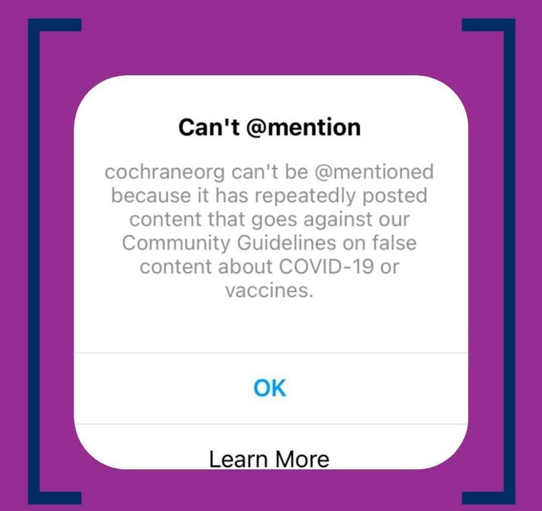 Instagram two years ago... Cannot mention Cochrane collaborative https://t.co/skJ6aVPYrp https://t.co/FdzVNKIspL