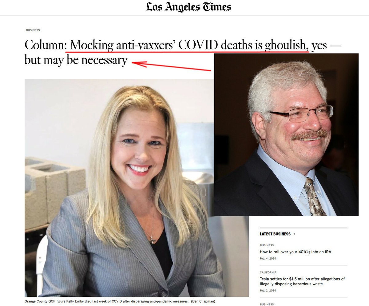 A disgusting excuse of a human being Michael Hiltzik, who publishes frequent LA Times editorials filled with hate and vitriol, is laughing at the deaths of unvaccinated people: (one wonders if LA Times should thank @hiltzikm for its insolvency) https://www.latimes.com/business/story/2022-01-10/why-shouldnt-we-dance-on-the-graves-of-anti-vaxxers