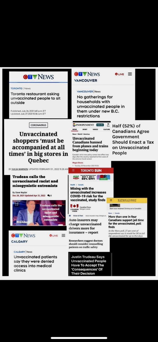 The campaign of HATE and SHUNNING towards the unvaccinated was very successful. This thread documents how mass media (TV and newspapers) spread hatred and division. How many vaccinated people ghosted their unvaxed friends, resulting in broken families? See π§΅below