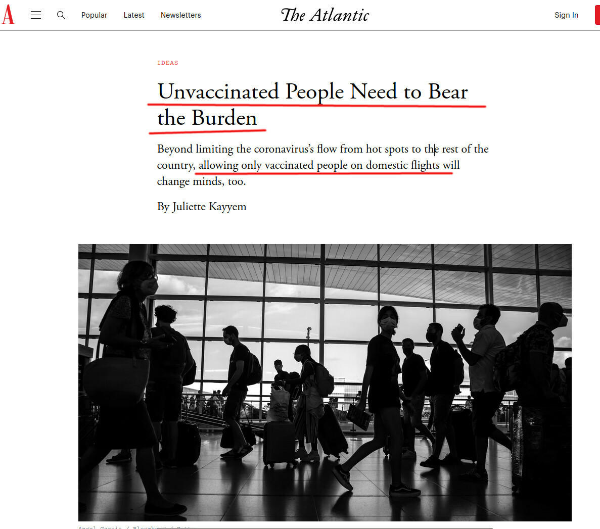 Human rights of the unvaccinated were trampled at every opportunity. https://www.theatlantic.com/ideas/archive/2021/08/unvaccinated-flight-vaccine-tsa-mandate/619643/