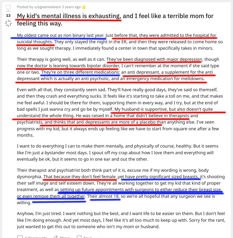 This mommy's underage child was feeling non-binary and mentally ill, and the mommy wanted to REMOVE THEIR SIZABLE BREASTS. https://t.co/FWaXdCQNkI