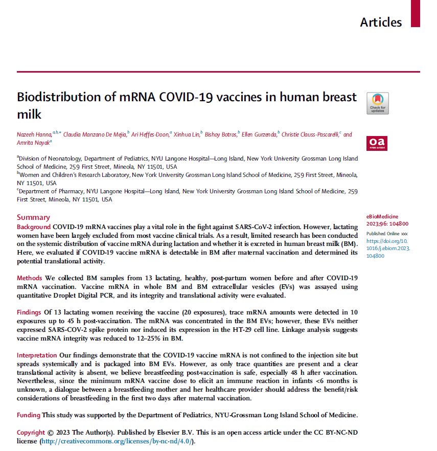 Hier c’était une théorie du complot Aujourd’hui c’est publié dans une revue scientifique par une équipe de 8 chercheurs… Oui l’ARNm du « vaccin » se retrouve dans le lait maternel… où on nous avait pourtant bien dit qu’il ne se retrouverait jamais.