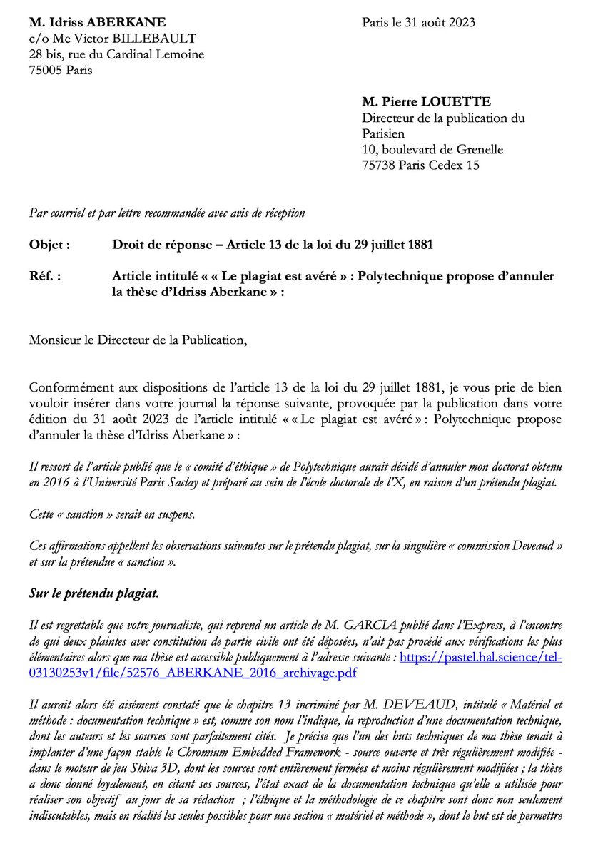 Bref dans ce contexte fleuri et bon enfant, vous ne serez pas surpris d’apprendre que polytechnique, qui a déjà menti aussi gravement que publiquement en déclarant que je n’avait jamais fait ma thèse chez eux (mais en étant inscrit à leur école doctorale quand même, en y ayant payé mes frais d’inscription et reçu une carte d’étudiant, en y ayant défendu ma thèse et en apparaissant sur l’annuaire des anciens doctorants…)