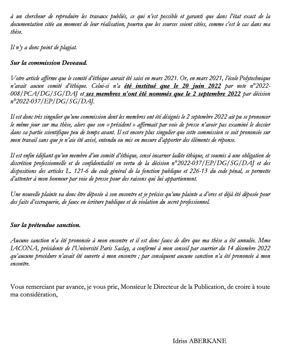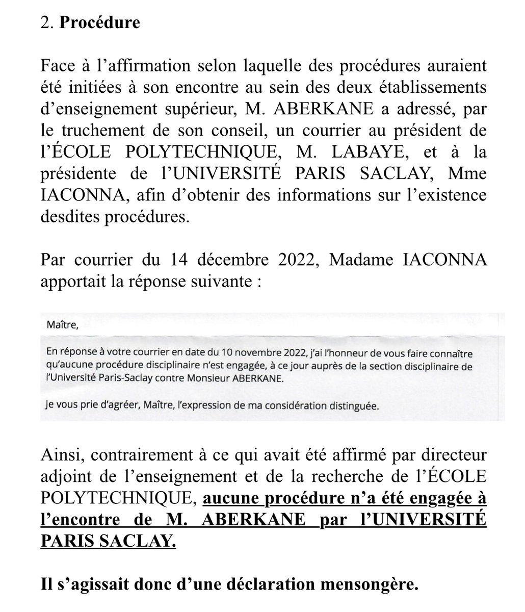 …a également menti encore plus brutalement en inventant une fausse histoire de plagiat et une fausse commission pendant un an, avant que l’Université Paris-Saclay, leur autorité de tutelle si nécessaire vu leurs casseroles à répétition, n’annonce que leurs bêtises étaient bien gentilles mais qu’aucune enquête n’avait jamais été ouverte.