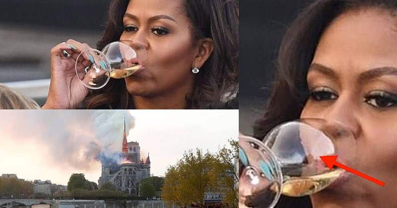 Ces photos sont authentiques et leur symbolique est encore plus puissante que le rire sous cape de Macron et Philippe devant l’âme de Paris en feu. Michelle Obama se trouvait bien sur un bateau-mouche à siroter un verre de blanc d’un air dédaigneux quand Notre Dame a brûlé… signe des temps