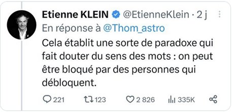 @idrissaberkane @DjaonBea @Nanopixo @EtienneKlein @jppetit1937 @idrissaberkane Voilà. 😉 Donc, pour moi depuis ce jour là associer son nom à "scientifique" ça ne colle pas.🤷♂️ Je note qu'il a effacé son message, j'ai galéré a le retrouver. D'ailleurs, c'est marrant tous ces "élites" qui ont effacé leur blabla.🤔🙄 https://x.com/Thom_astro/status/1638203493700755458?s=20 https://t.co/txAKYnJkbp
