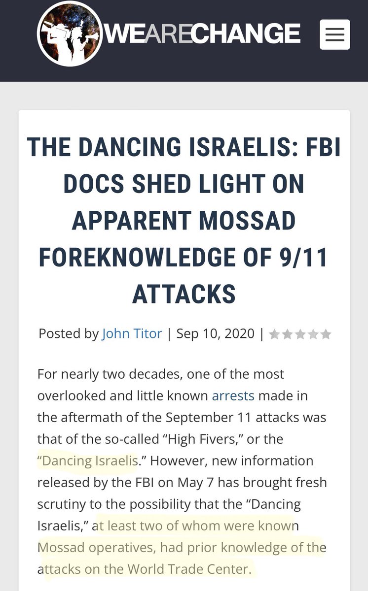 •9/11 was orchestrated by 3 entities including the Saudis who provided the terrorists and the major cover story. •By Mossad who provided the Isreali agents that got caught with a van full of explosives and an empty van full of explosive residue the day of, as well as were filming and laughing before the first plane hit which is how they got caught…only to be handed back to Isreal without question. They had access to the buildings for a whole month prior using a fake Mossad company, and rigged the 2 towers and building 7 to guarantee they would fall. Building 7 was never hit by a plane, was 2 buildings away from the tower, and housed a lot of the government’s clandestine paperwork like Kissinger’s Safari Club and his global CIA money laundering enterprise etc. •The CIA suppressed evidence and controlled the media to cover up holes in their story like the pristine terrorist passport found on the ground, so they could hide the trillions the pentagon “lost” the day before, push the unconstitutional Patriot Act to spy on Americans for blackmail, and so the military industrial complex could start a war in the Middle East for profit and power with terrorists the CIA actually trained by blaming Bin Laden who they also trained. The also wanted to destroy Iraq to install the Federal Reserve central banking system there. I didn’t believe 9/11 was an inside job either until I did my own research. Average Americans need to know about the atrocity the Feds committed on us…3,000 dead plus however many troops we lost fighting so the central banks and war pigs in DC could profit. It’s why they didn’t care how they pulled out of Afghanistan…they were setting up to start another contrived war in Ukraine to keep these forever wars going. Our government was behind 9/11 with the help of two supposed allies…they would have never gotten away with it if social media was more of a thing back then. We never get answers to the holes in the government’s stories about the Las Vegas shooting or Uvalde or any of them. They just tried to medically genocide us with this vaccine and cover it up…3000 dead Americans to hide trillions of dollars and keep the war machine going is nothing to these monsters. Americans need to wake up to how evil our government is and actually do something about it. https://t.co/8S51Fd9qVy