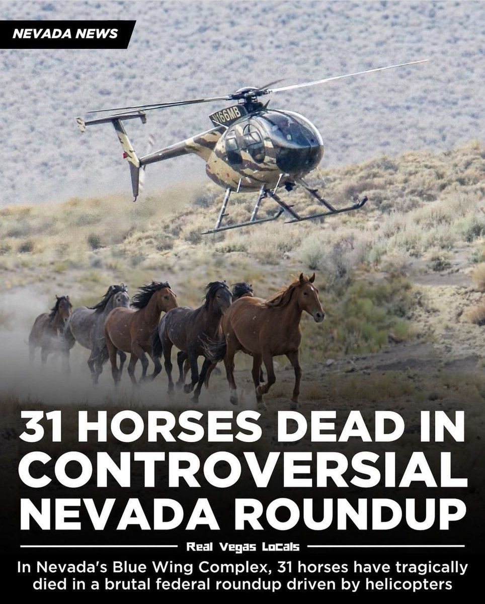 BLM just murdered 31 wild horses in Nevada by rounding them up, because they were on land no one was using...at the cost of over $624k to tax payers.😡 Anything that can survive in this wasteland of a desert deserves to live...GFY BLM, CD Warner Livestock and Governor Lombardo. https://t.co/Ky5L4YEVAg