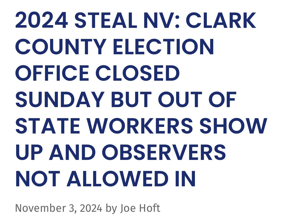 The Nevada Election shenanigans have begun.... Supposedly the election office was closed Sunday...but when my friend showed up to see what they were up to, she noticed a parking lot full of out-of-state plates and sketchy people refusing to explain what they were doing. https://joehoft.com/2024-steal-nv-clark-county-election-office-closed-sunday-but-out-of-state-workers-show-up-and-observers-not-allowed-in/#google_vignette