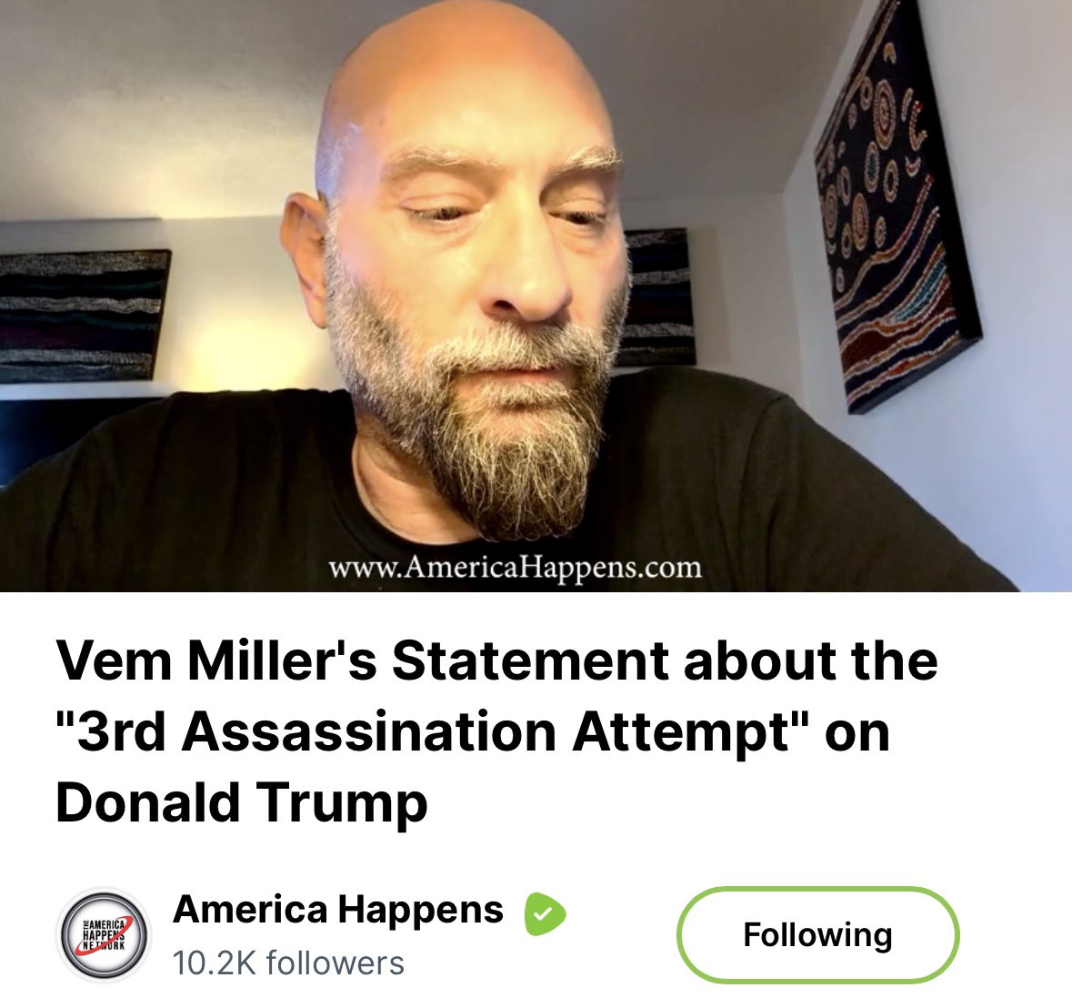 I talked to Vem Miller last night....the man falsely accused of being "Trump's 3rd assassination attempt" and my friend and business partner for American Happens. Vem had valid passes to get in, that part's a total lie....they were given to him by the head of the Nevada GOP (who's a total douchebag, but clearly someone capable of procuring them.) Vem's only crime was not understanding that the guns he legally purchased and carried where we live in Nevada.....are all illegal in California for multiple stupid reasons, although the fact the magazine needs to be transported separate from the physical gun itself rendering it completely useless to ever defend yourself in a carjacking etc. is my favorite. Thinking he was doing the right thing he declared these weapons to authorities on arrival which I wouldn't have done, but he had done dozens of other times in states that weren't Commiefornia. That lead to them wanting to "check" the serial numbers to make sure they ran back to him and of course, everything is illegal in California so he ended up getting booked and given a ticket. Now, where all the other shit about this mythical "threat" he made to kill Trump came from.....needs to be answered by this Sheriff who apparently has lofty goals of becoming governor one day and apparently saw this as an opportunity to look like some fake hero. I originally thought Vem had been targeted because of all our anti-government corruption exposes and documentaries....but apparently I was giving the Feds way too much credit. Instead Vem overheard the local cop non-stop shit talking him about being a Trump supporter.....so the extra hard way in which they decided to screw with him at that point seems to have originally stemmed out from that. But clearly....he wasn't there to kill Trump. A 10 second scroll through his social media would have revealed that to any idiot....so why is this Sheriff STILL pushing this fake story that he thwarted some master attempt on Trump's life by a registered Republican Trump supporter, who should really start putting less faith in authority like his anti-government Libertarian business partner. California gun laws are as stupid as they are unconstitutional....and it's about time it needs to be addressed. Cops who lie for clout and political gain need to be held accountable stripped of their badges as well. Some of you ran with this story for clicks and have yet to correct it, but if you've learned anything by now....it's that if it doesn't sound true, it's probably not. Honestly, the opposite of whatever the fake news says is probably going to be true at this point. Oh, and Riverside County Sheriff Chad Bianco......you have some 'splaining to do. #VemMiller https://rumble.com/v5im5xh-vem-millers-statement-about-the-3rd-assassination-attempt-on-donald-trump.html?e9s=src_v1_ucp