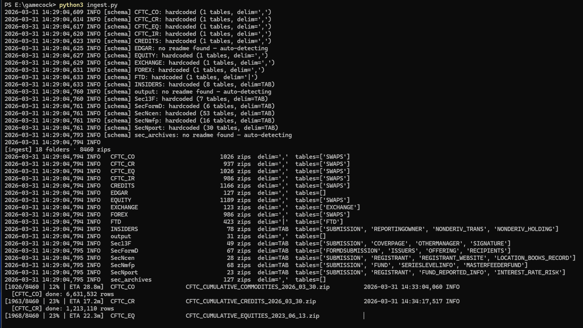 DTCC archive database creation, so far, seems to be working. if i can create a proper SQL database from all archives, then i'll test the custom AI program afterwards. #GameCockAI , if i can help it, will become realized. if it does, it will be a game changer for all investors. https://t.co/YREQXhTHrS