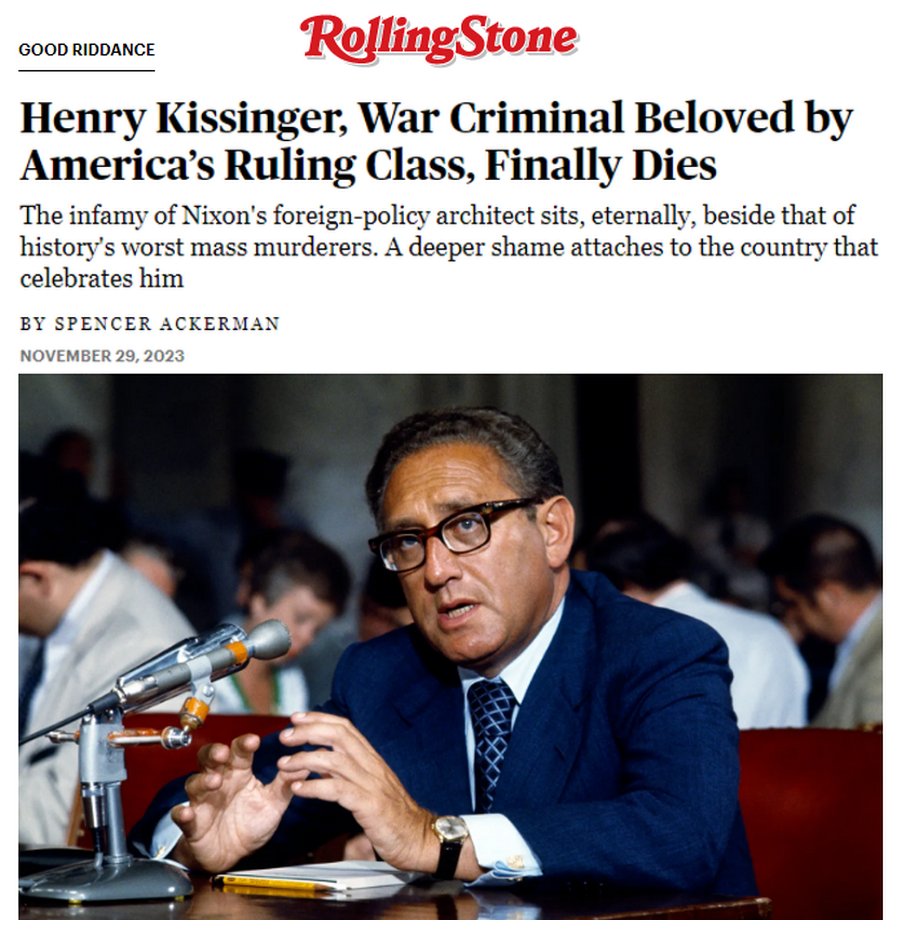 @jattali Sinon pour ceux qui veulent lire un résumé un peu plus sérieux de la vie du criminel de guerre Henry Kissinger https://www.rollingstone.com/politics/politics-news/henry-kissinger-war-criminal-dead-1234804748/