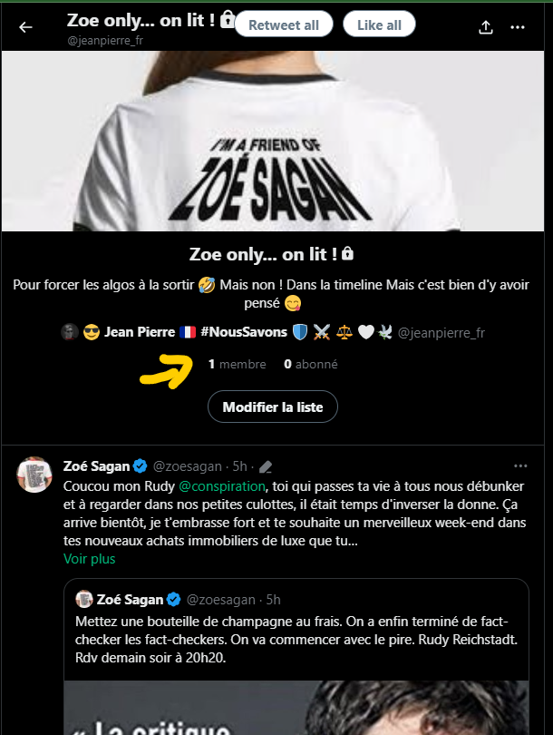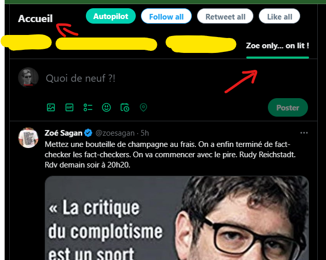 2/2 | Et puis épingler cette liste pour y avoir accès rapidement par l'affichage des timelines (par le menu Accueil). Ce n'est pas à 100% (les algos sont butés 🤪), mais ça aide. P.S. @soesagan ! Tu me files une commission, hein ?! 🤣 https://t.co/cjdZIIBimw