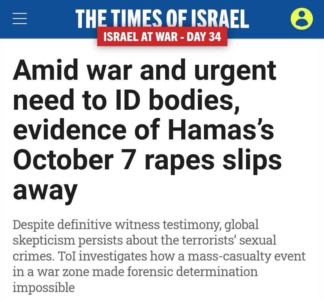 Dans le document peut-être le plus troublant présenté par le gouvernement israélien, les journalistes ont pu voir une vidéo montrant "le cadavre d’une femme partiellement brûlée, avec une tête mutilée… La robe de la femme morte est remontée jusqu’à la taille et sa culotte a été enlevée", selon le Times of Israel. Daniel Amram, le blogueur d’informations privées le plus populaire en Israël, a tweeté la vidéo du cadavre brûlé de la femme, affirmant qu’ "elle a été violée et brûlée vive". En effet, la jeune femme semblait avoir été tuée instantanément par une puissante explosion. Mais elle semble plutôt avoir été extraite de la voiture dans laquelle elle était assise. Puis le véhicule a été entièrement détruit, se trouvant sur un champ de terre, comme beaucoup d’autres véhicules attaqués par les hélicoptères Apache. Ses membres pliés étaient typiques d’un corps qui avait été placé dans une voiture après la rigidité cadavérique. Elle était légèrement vêtue, les jambes écartées, suggérant une agression sexuelle. Les experts et responsables israéliens ont affirmé qu’elle avait été violée. Mais les allégations d’agression sexuelle se sont jusqu’à présent révélées sans fondement. https://arretsurinfo.ch/les-temoignages-du-7-octobre-revelent-que-larmee-israelienne-bombarde-les-citoyens-israeliens-avec-des-chars-et-des-missiles/