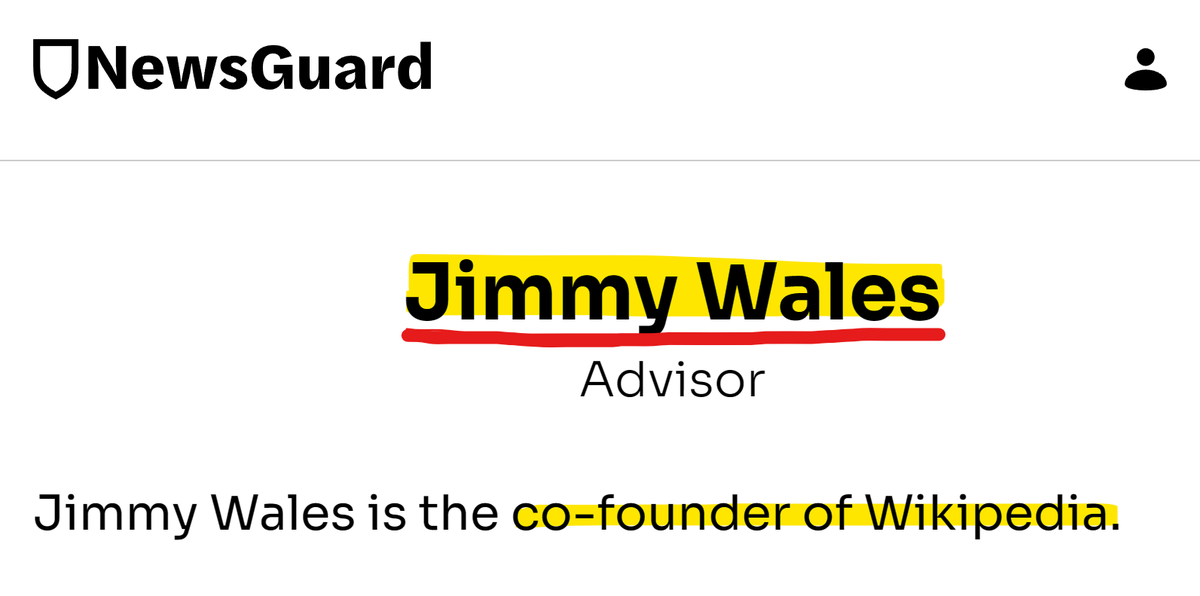 Elon, for your peripheral vision, Jimmy Wales advises NewsGuard, which is knee deep in a plot to get gov’ts to bankrupt alternative news. NewsGuard worked w/ EU on new disinformation code. Its biz model has “disinformation compliance” services w/ censorship laws it promotes. https://t.co/QDz1a2qFVZ
