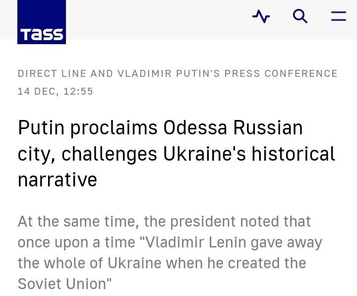 🇷🇺 ODESSA IS RUSSIA! While the West is busy with trying to find more money for Ukraine and organize WEF sponsored "peace talks" without Russia, some very important statement were made by Vladimir Putin today, during his call-in press conference, which might indicate the direction the SMO is headed. 💬 "The whole southeast of Ukraine has always been pro-Russian, because these are historically Russian territories. Turkey knows this well, the entire Black Sea coast went to Russia as a result of the Russo-Turkish wars. What does Ukraine have to do with this? It has nothing to do with it. Neither Crimea, nor the entire Black Sea coast in general," Putin said in response to a TASS question. "Odessa is a Russian city. We know this. Everyone knows this. But no, they drummed up all sorts of historical nonsense," he pointed out. At the same time, the president noted that once upon a time "Vladimir Lenin gave away the whole of Ukraine when he created the Soviet Union." "We came to terms with this after the collapse of the Soviet Union. We accepted it and were ready to live in this paradigm," the Russian president emphasized. "But this part, the southeast [of Ukraine], is pro-Russian. It was also important for us," he underscored.