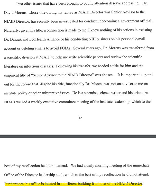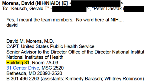 Fauci lied! Morens NIAID office is the same building 31 on the 7th floor with Fauci and in Fauci's calendar 3 times from 2020-21