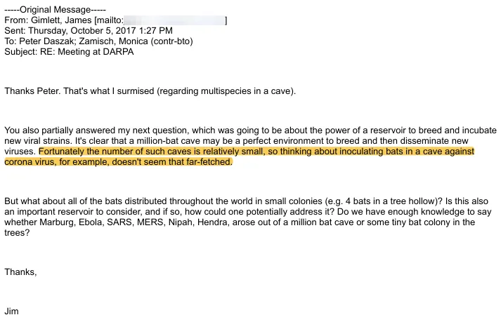 How Fauci, Daszak & Baric blew up the world, lied under oath, and got away with it In 2017, Jim Gimlett of DARPA told Daszak he wanted to vaccinate Chinese bats in Chinese caves Daszak responded, "Interesting idea..."🧵