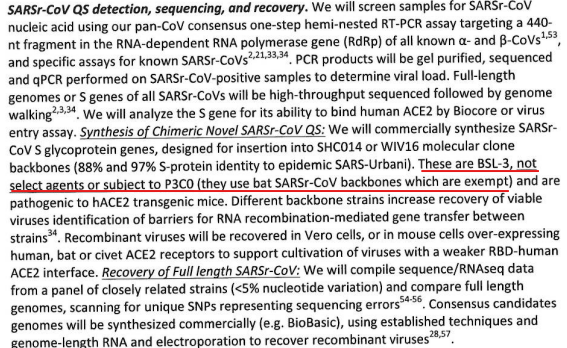 the U01 CREID grant includes Dani’s BSL4, and R01 grant include Shi’s BSL2 In other words, Fauci was funding 2 projects in Wuhan: 1 in Shi's BSL2, and one in Dani's BSL4 https://t.co/beXY4aWQbk