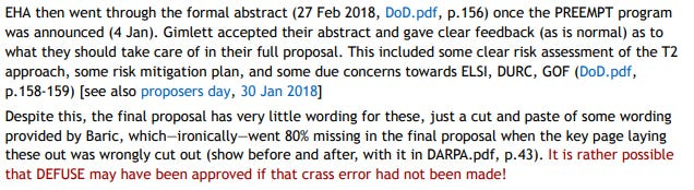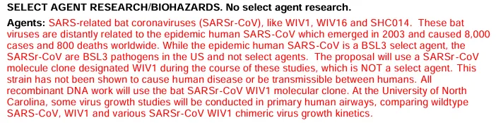 Like DARPA Defuse, Baric made sure the risky work was at UNC, not the WIV. And Baric wrote the GoF workaround for NIAID: these are bat SARSr-CoV and not select agents They won in 2019, meaning DARPA Defuse (TA1) is a go under Fauci's funding from NIAID