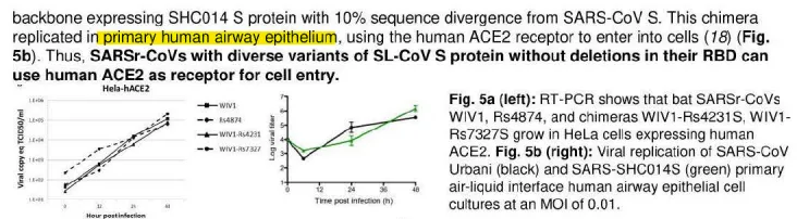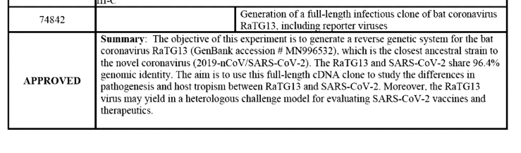 Baric's was explicit, Shi's BSL2 plays with safe pseudotypes, but Baric creates unsafe chimeras (combo of 2 or more viruses, like SARS2) Baric claims his technology is "potentially proprietary" Peng Zhou doesn't like it, foreshadowing "target might be human but not bats"
