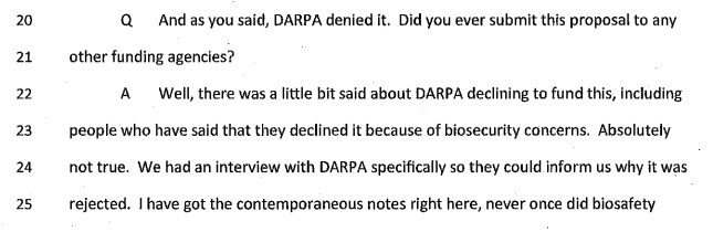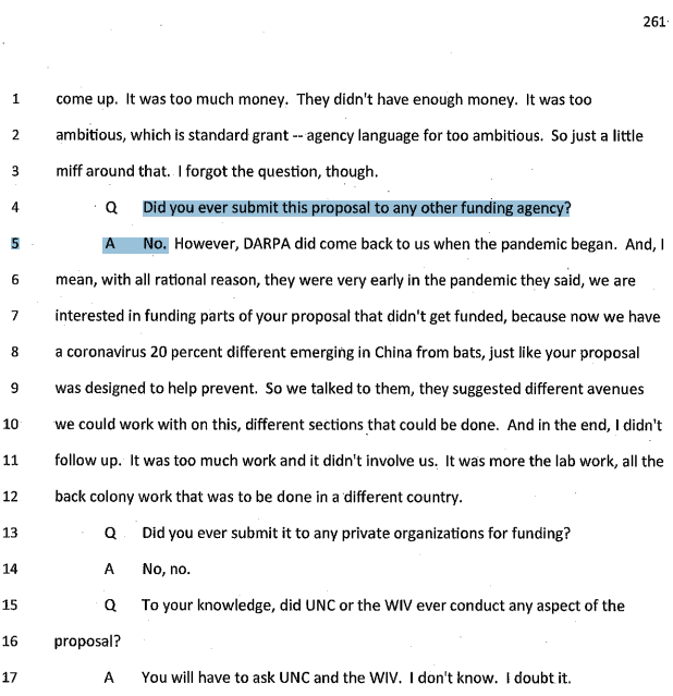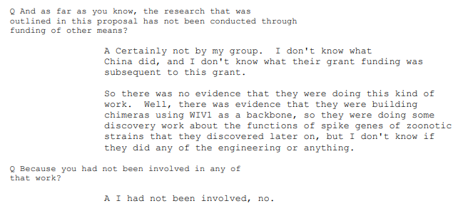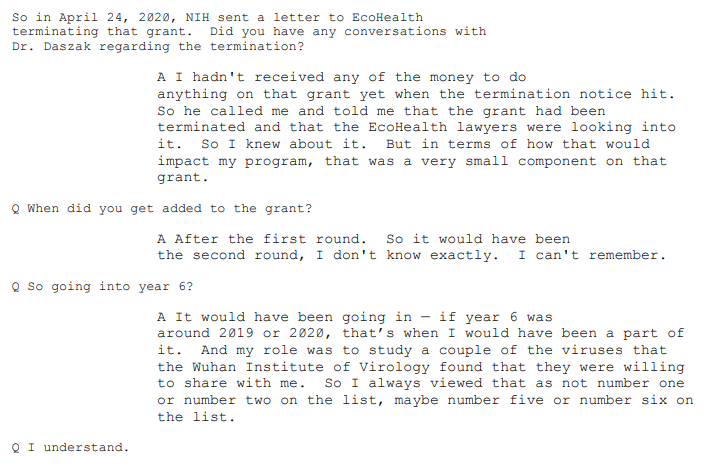 Baric's inclusion in this R01 grant was so odd that it came up in his 2024 testimony "my role was to study a couple of the viruses that the WIV found that they were willing to share with me."