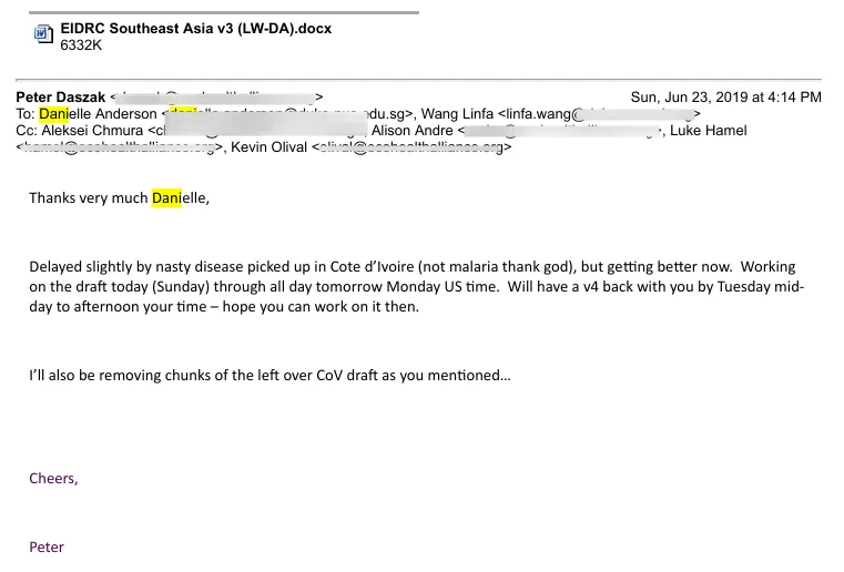 On New Year's Eve, Daszak forwards Baric's email to Linfa and Dani https://t.co/P37BuRfVsw