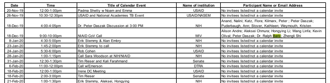 several late 2019 NIAID teleconferences with Daszak, Shi, Baric, Linfa Wang, Wuhan, etc https://t.co/NalI7zXv21